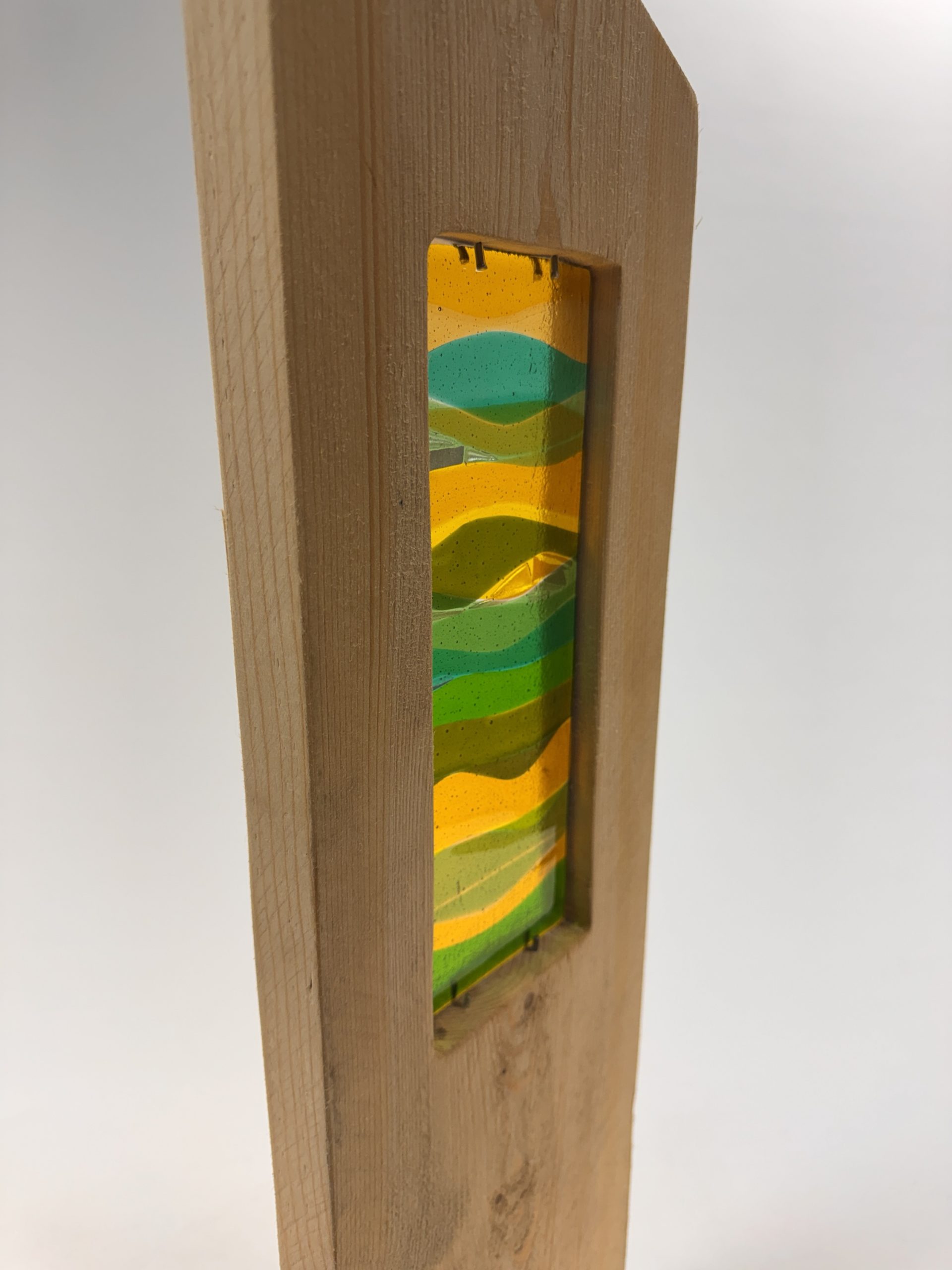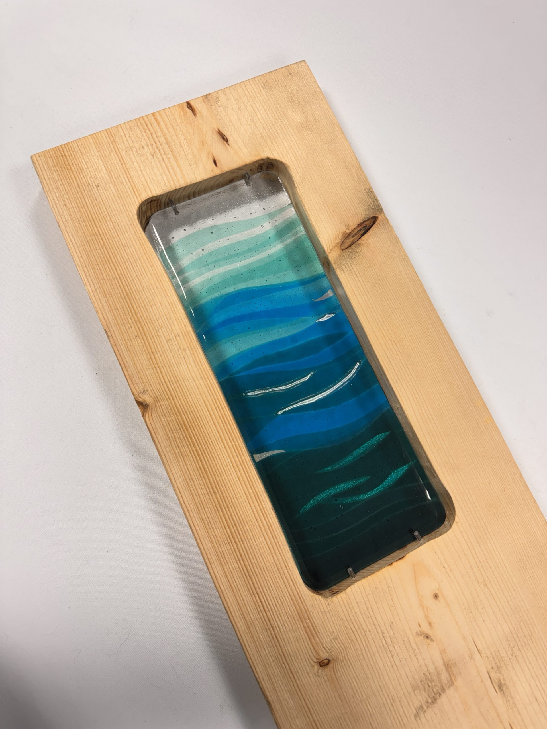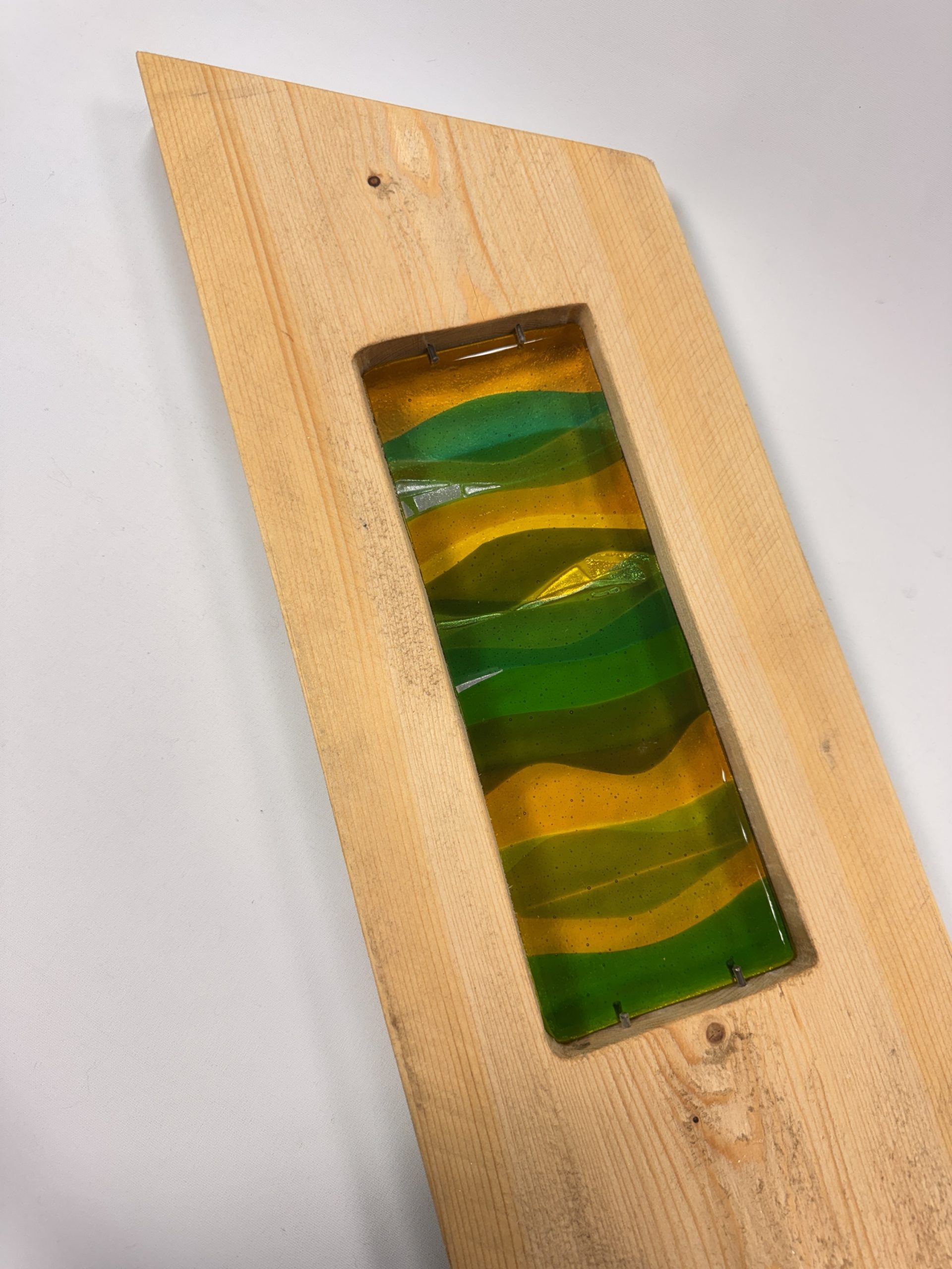 You could keep your panel as a slab of glass and display/mount in your home (I’m happy to advise about wall mounts etc) or, as this workshop was originally designed, leave your panel with me to mount into treated wood, and affix metal legs, ready for you to place in your garden, for all year round colour.