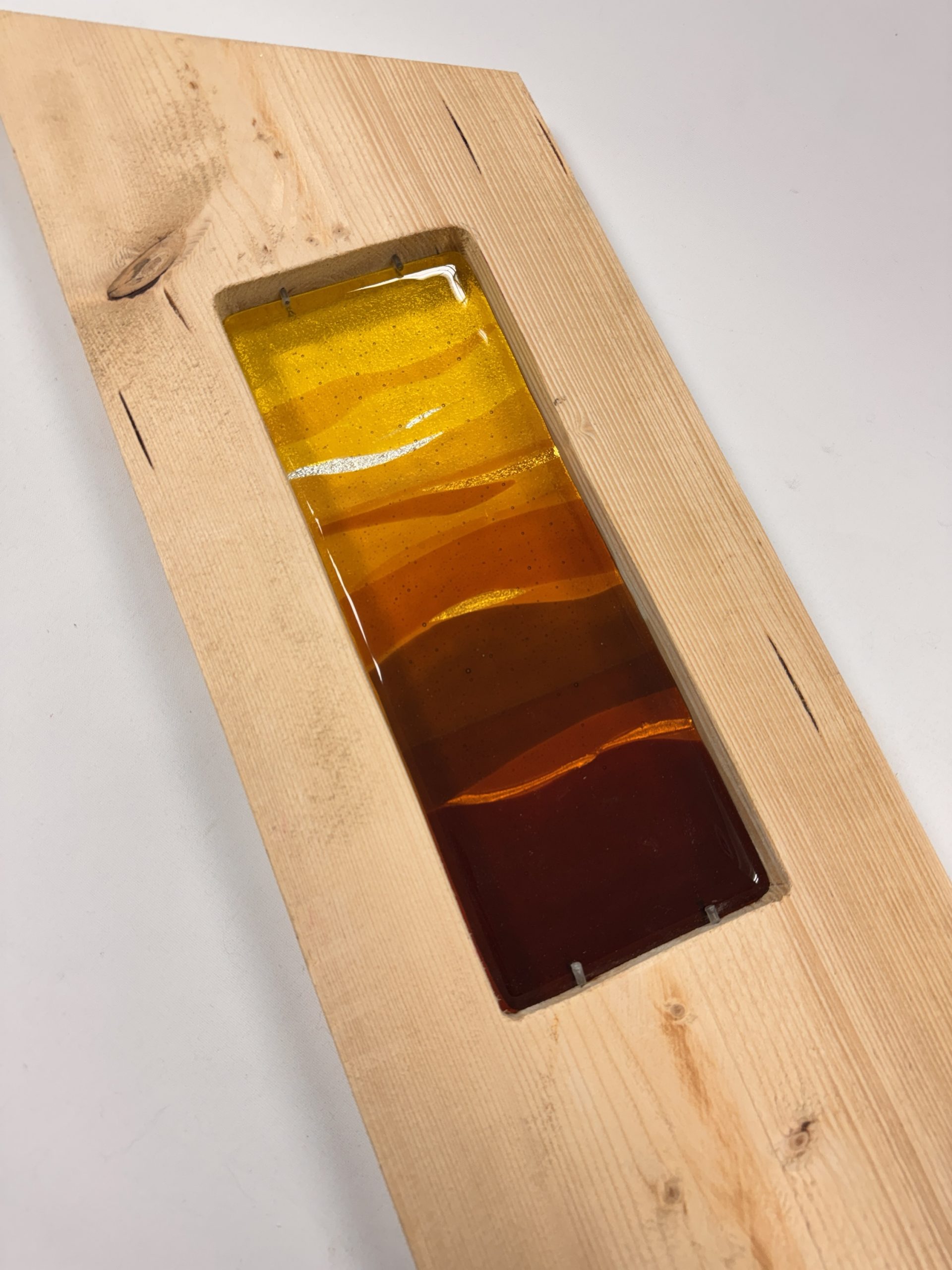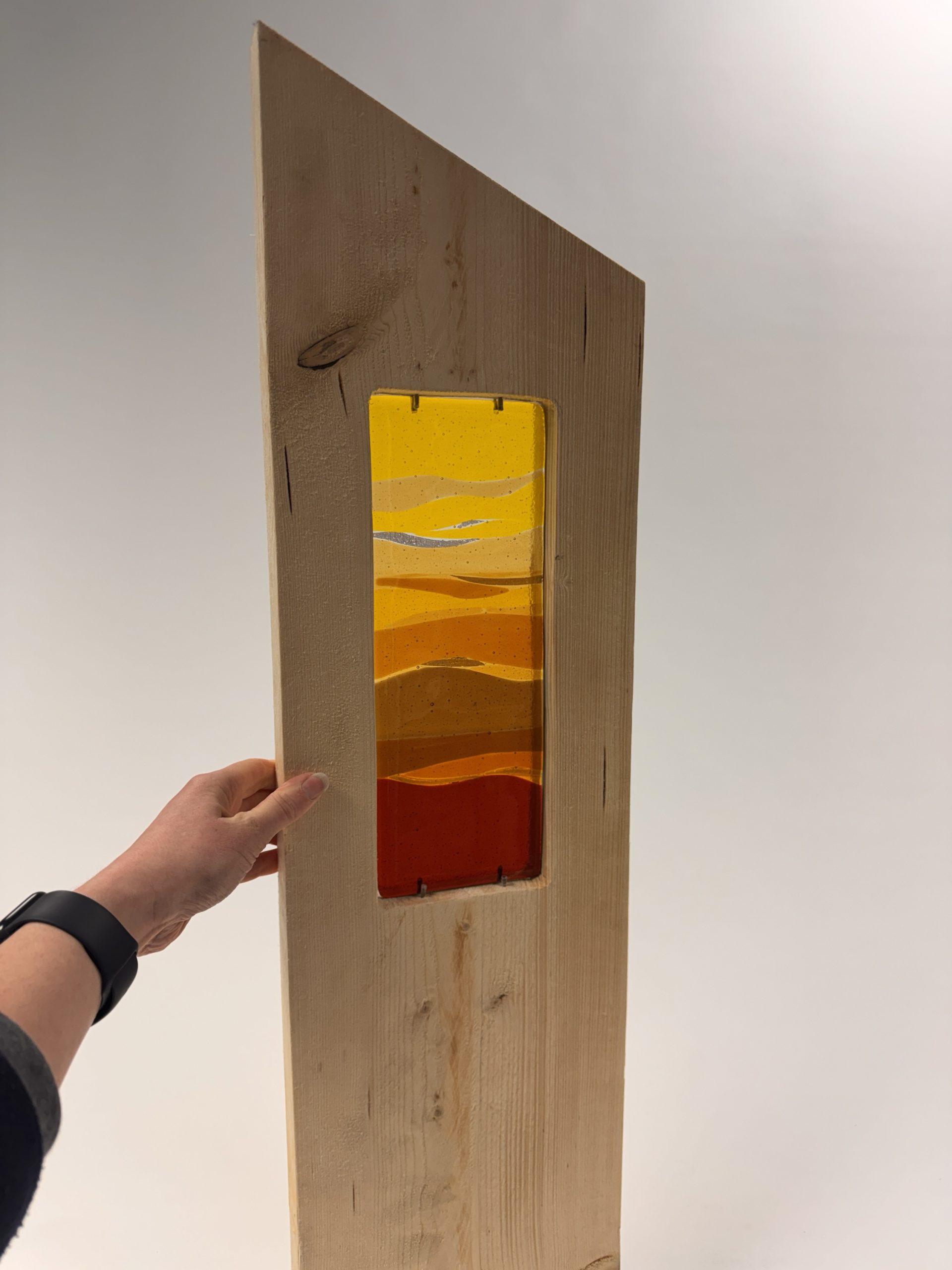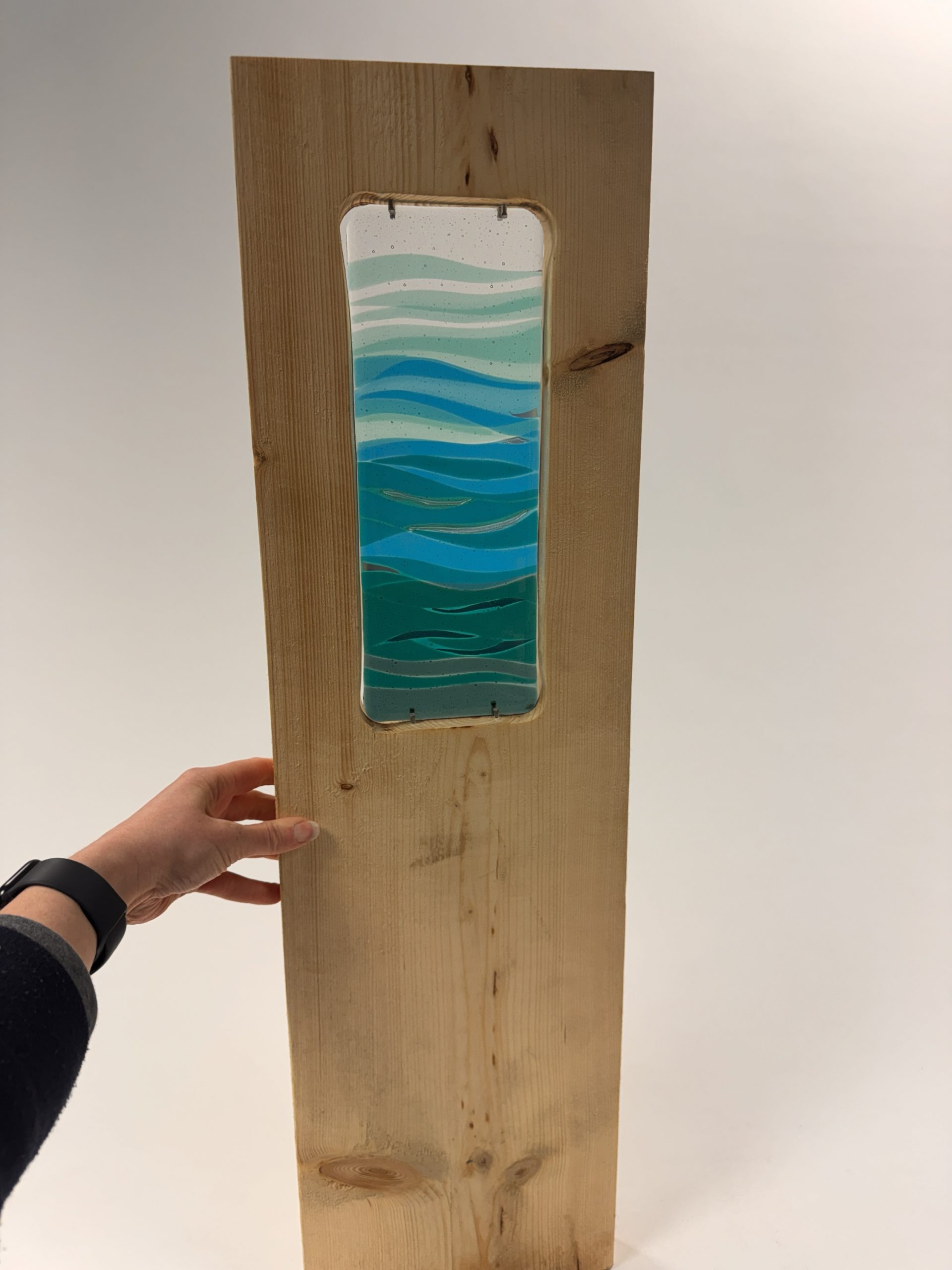 You could keep your panel as a slab of glass and display/mount in your home (I’m happy to advise about wall mounts etc) or, as this workshop was originally designed, leave your panel with me to mount into treated wood, and affix metal legs, ready for you to place in your garden, for all year round colour.