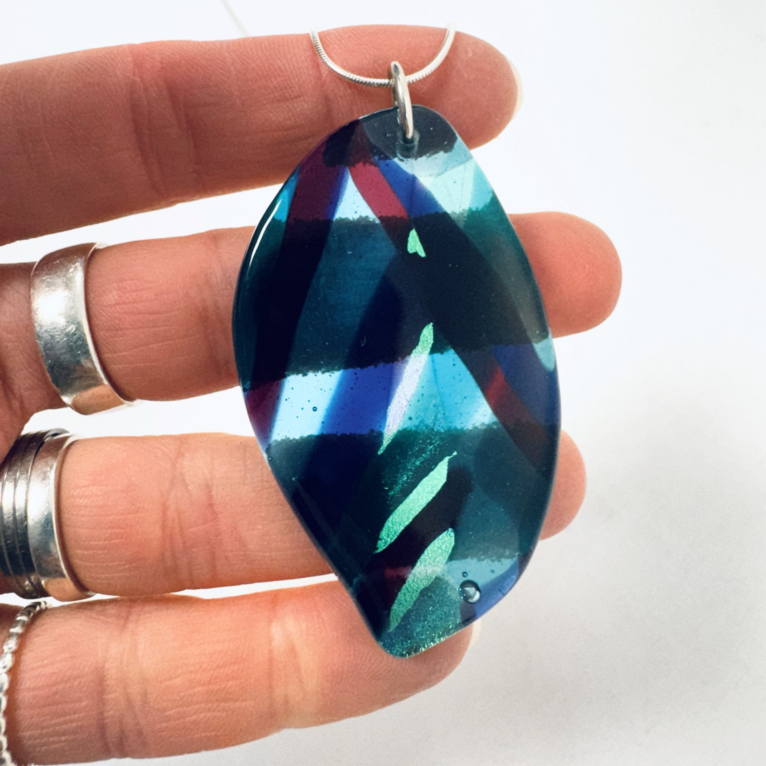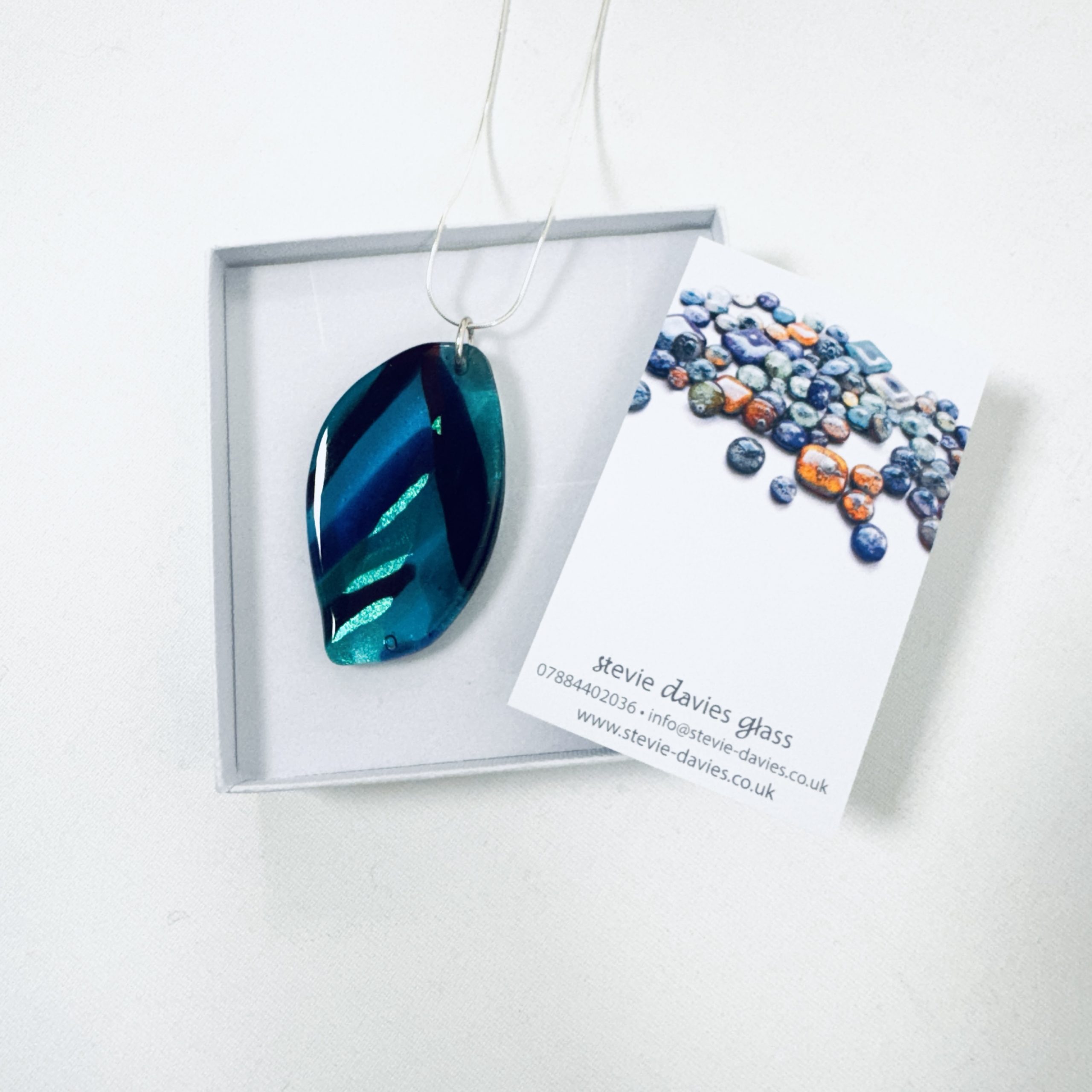 I love to create wearable art, particularly one off necklaces with layers of colour and plenty of sparkle, all hand finished with Sterling Silver details. More of an Artwork than my other simple jewellery ranges. Each unique piece is influenced by the things I see, my surroundings, the photos I take while out and about and my interpretation of the environment into a fused glass form.